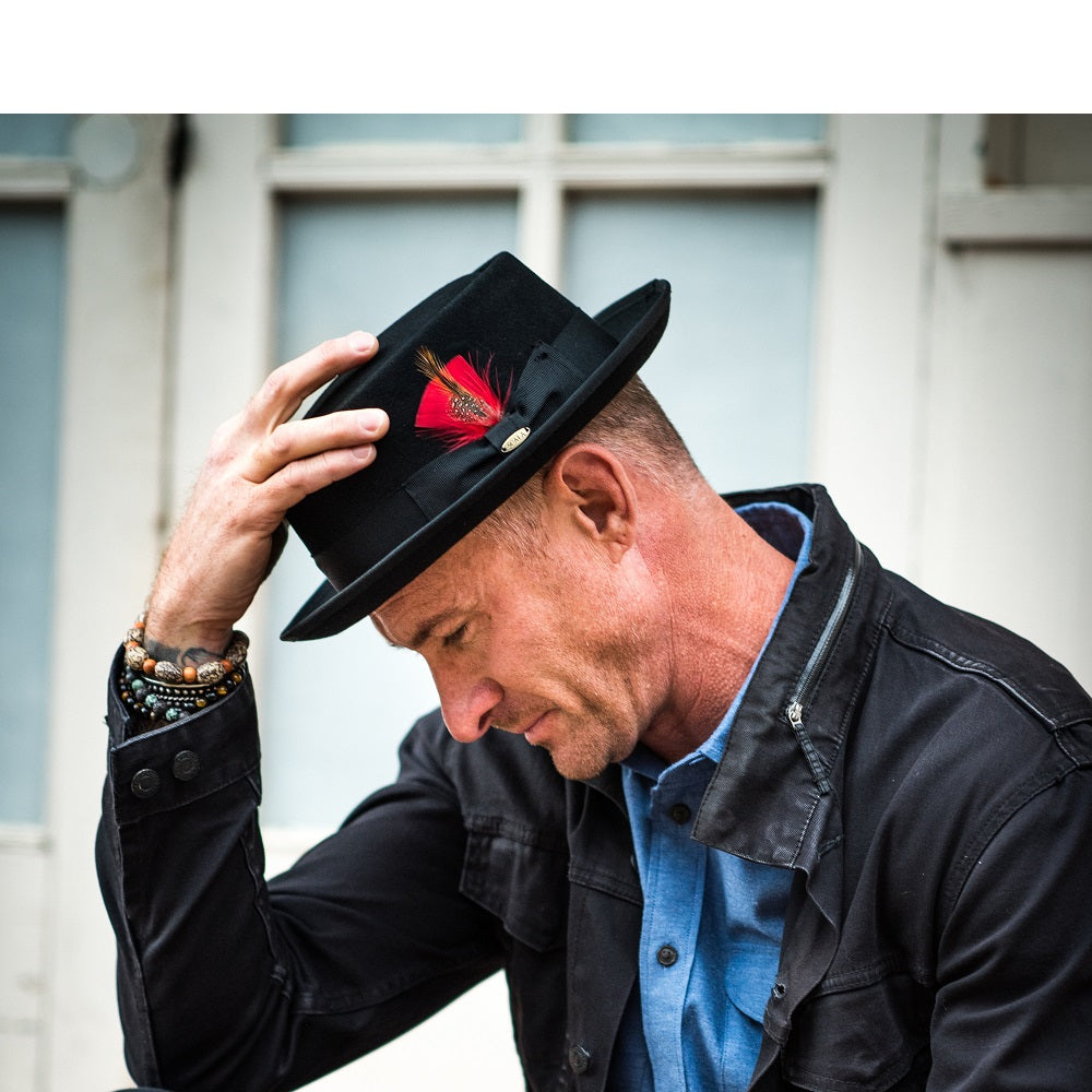 Sleek but bold. You're able to pull off many looks, and this wool felt pork pie hat will let you blend in with the crowd, from the Derby to church.