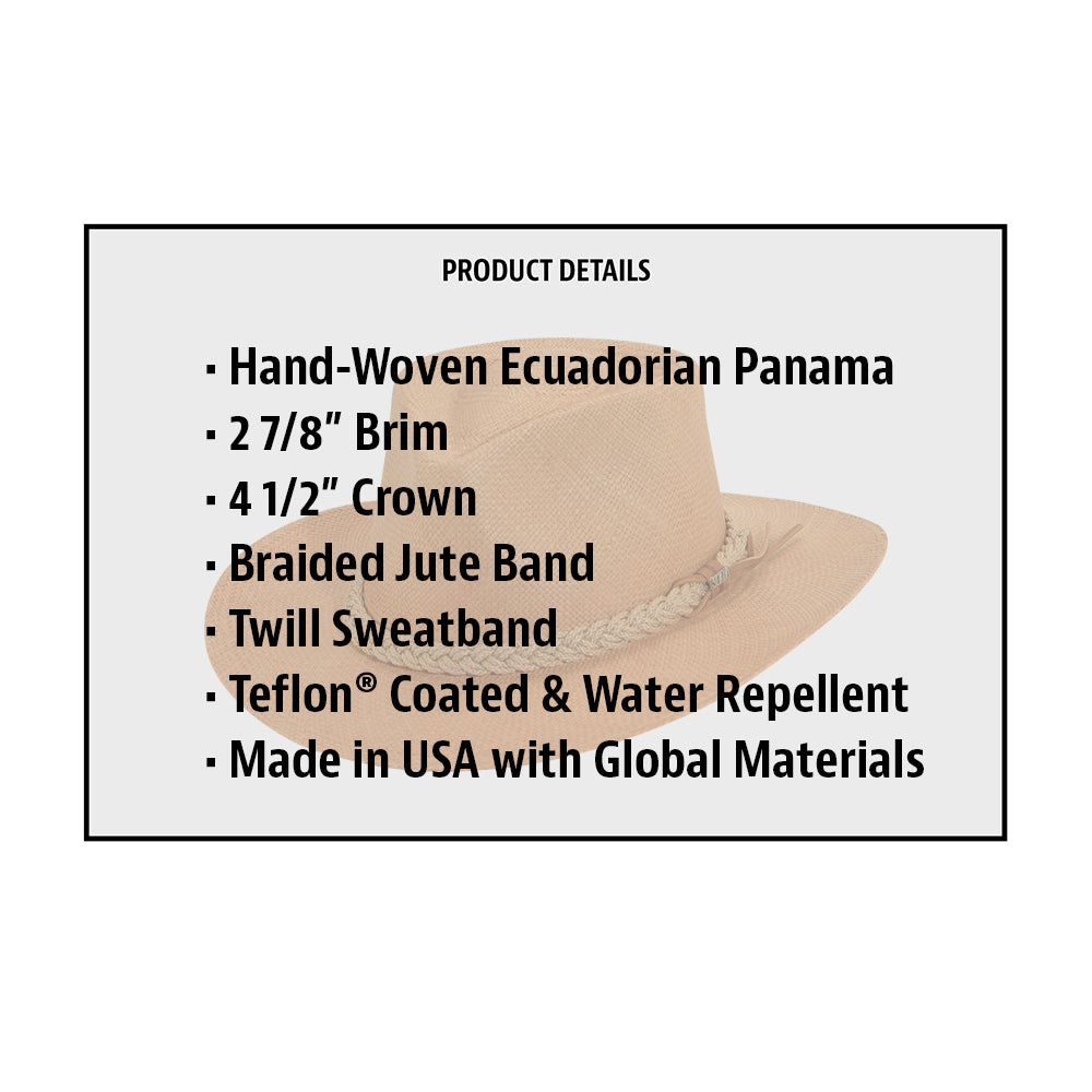 Nothing says classic style like this America-assembled Scala Classico Panama straw hat. The wide brim outback-style hat with braided jute band will keep you cool and your wardrobe fresh.