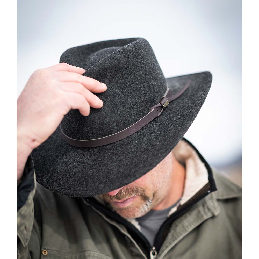 Simple, straightforward, and to the point. Just like you. This water repellent wool felt outback hat gets the job done, taking you from rigorous outdoor working days to relaxing evenings with the fam.