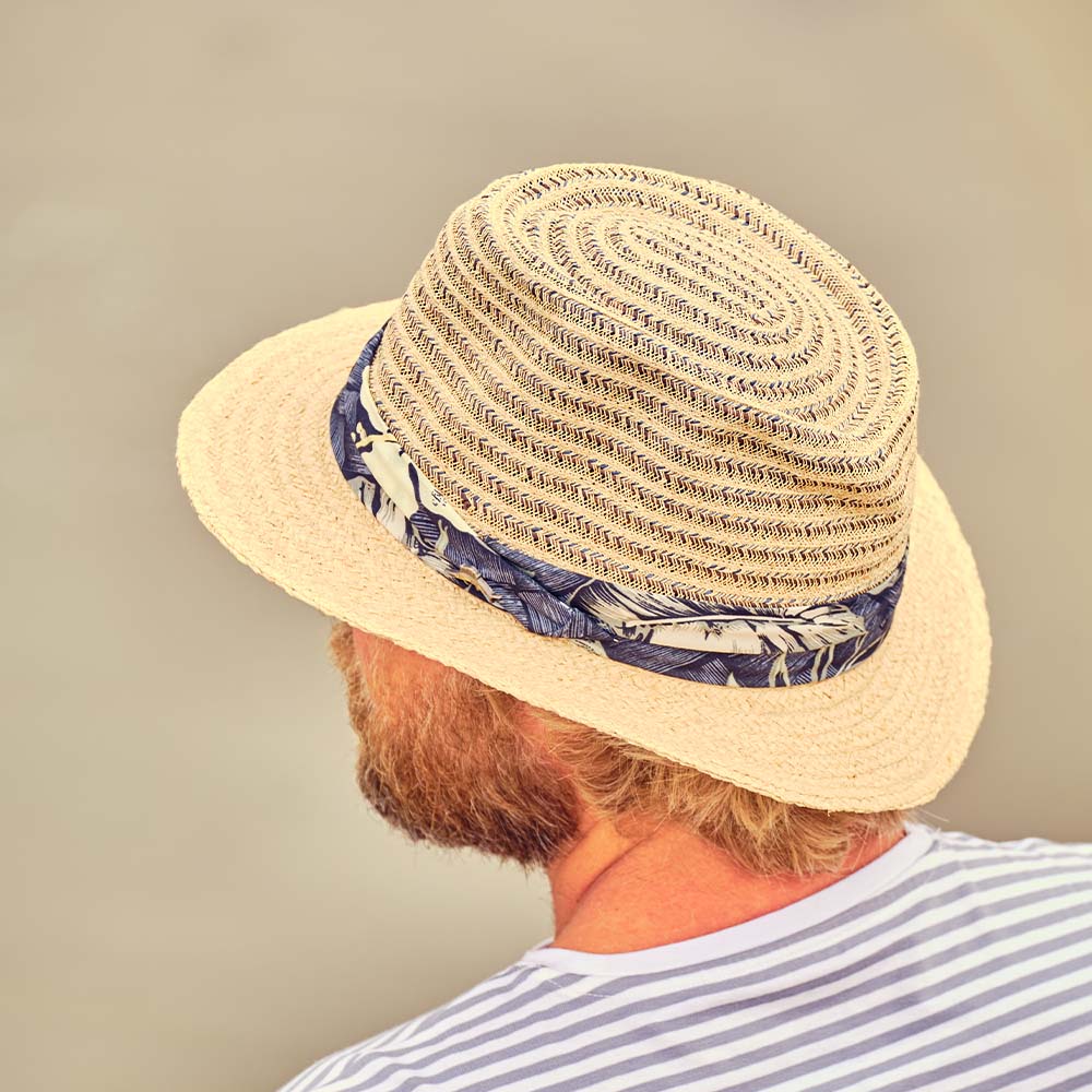 - 2-Pleat Tropical Print Band with Tommy Bahama Marlin Pin